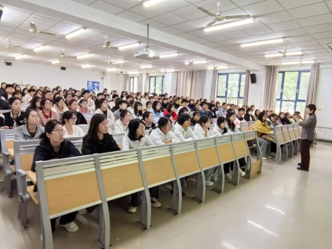 王院长还对英语专业的就业形势与发展方向进行全面分析:从传统的中小学英语教师、外贸翻译,到新兴的跨境电商运营,英语专业就业边界正不断拓宽。她鼓励同学们立足语言优势,主动融合其他领域技能,考取教师资格证、翻译证或辅修商务、教育类课程,打造“英语+”复合型竞争力。讲座最后,王院长为新生划出清晰重点:大一打牢语言基础,积极参与课堂展示、演讲比赛等活动;大二明确发展方向,尝试学科竞赛或实习实践;大三聚焦职业技能,冲刺各类证书并深化专业研究;大四全力备战就业或升学,让大学四年每一步都扎实且有价值。