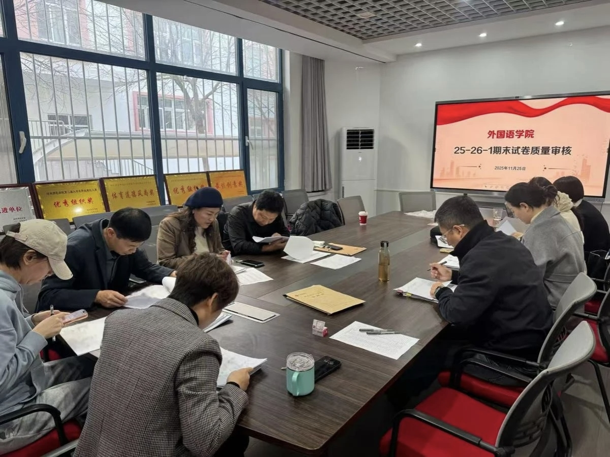 为全面保障期末教学评价的科学性与规范性,凸显试卷质量在教学质量监控中的核心作用,外国语学院于11月25日召开2025-2026-1学期期末试卷审核会。王娜院长与徐广林院长牵头主持,各教研室主任全员参会,共同对本学期所有考试课程试卷进行严谨细致的集中审核。