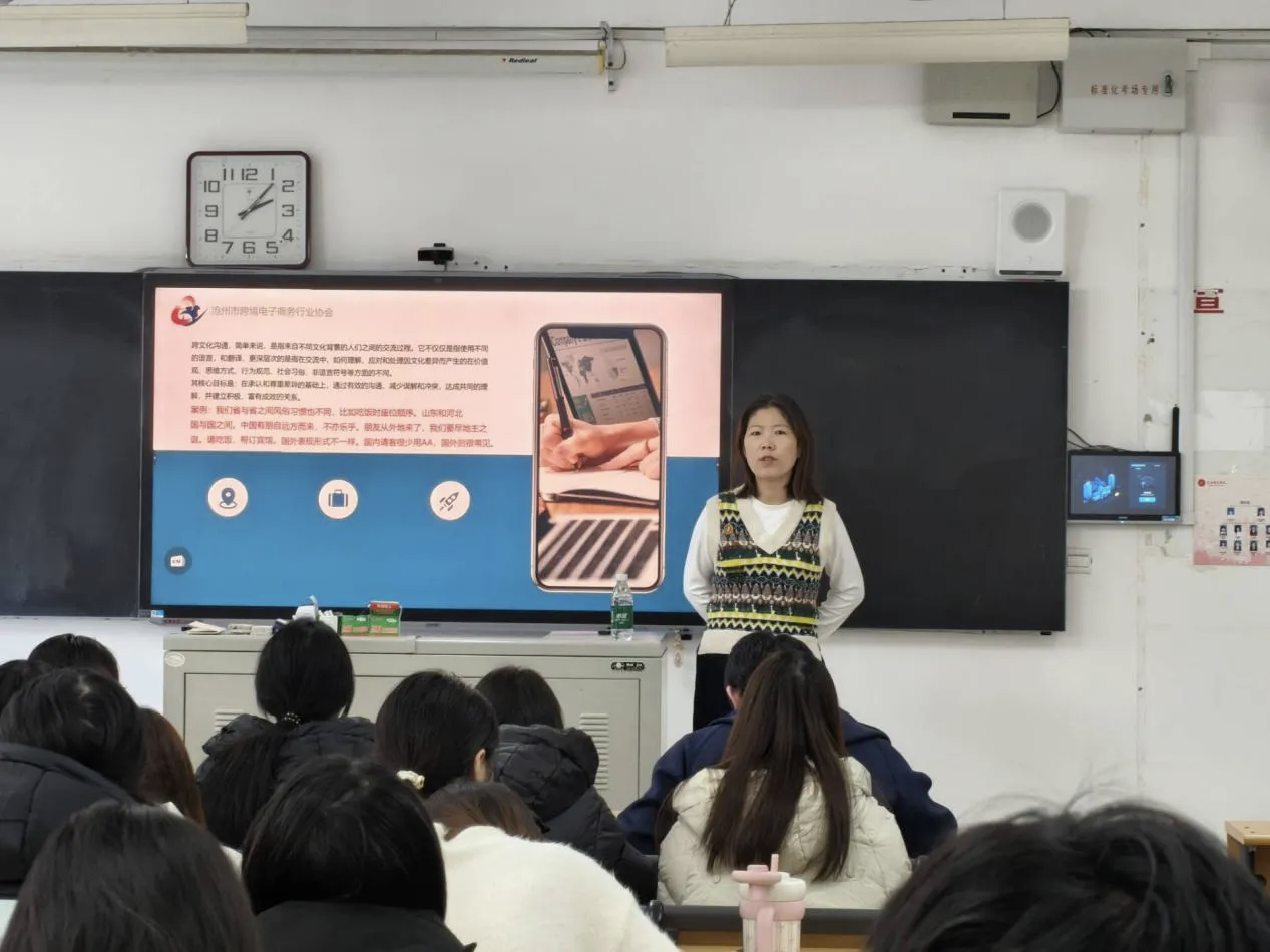 为了精准理解国际商务场景中的文化逻辑,掌握跨文化沟通能力。外国语学院本学期继续联合沧州市跨境电子商务协会,推进《综合商务英语》共建课程。11月25日,该系列课程第六讲如期开展。沧州市金波体育用品有限公司总经理、沧州市跨境电商协会金牌讲师金义俊老师担任主讲。