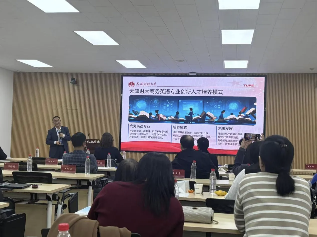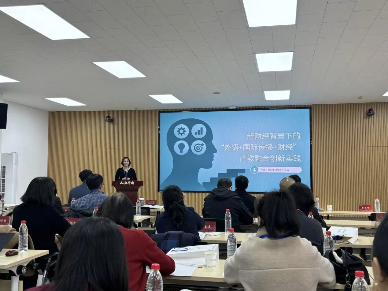 11月29日,我院副院长徐广林和商务英语教研室主任李慧在天津财经大学参加了“外语教育产教融合服务国家区域发展“研讨会。研讨会由天津市外文学会和全国商务英语实践技能大赛组委会主办,天津财经大学人文学院和科研处承办。中国日报社天津记者站、福建亿学教育科技集团有限公司负责人和来自天津市和河北省部分普通高校和职业院校的外语学院领导和商务英语专业建设负责人参加了会议。