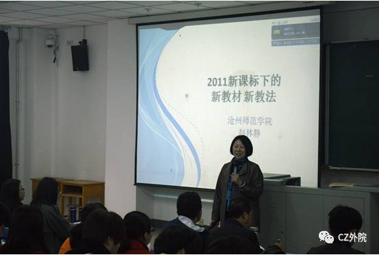 沧州师范学院外国语学院院长赵林静教授打响了本次国培计划的“第一枪”,她带来的“英语课程标准解读与英语教材分析”专题讲座,应用性强,浓缩了赵教授多年一线的教学经验,显示出其深厚的专业功底和积淀。