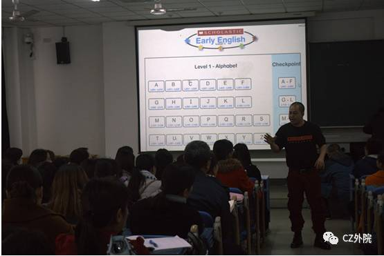 下午的讲座是由沧州市快乐英语学校的林寿贺老师带来的“英语拼读法”,旨在通过系统的学习,让各位学员找到让孩子们对英语产生兴趣的“钥匙”。林老师的课件准备充分,内容丰富,全程林老师都在与学员们进行交流,通过各种形式,学员们注意力高度集中,现场达到了非常好的氛围。林寿贺老师的讲座在未来两天还将继续。