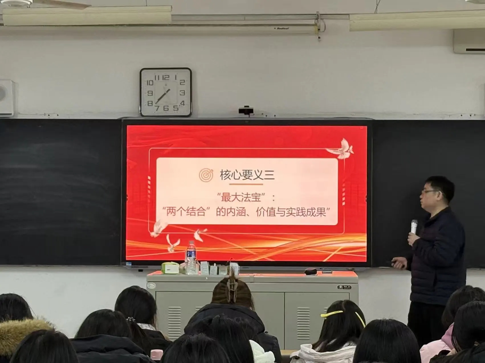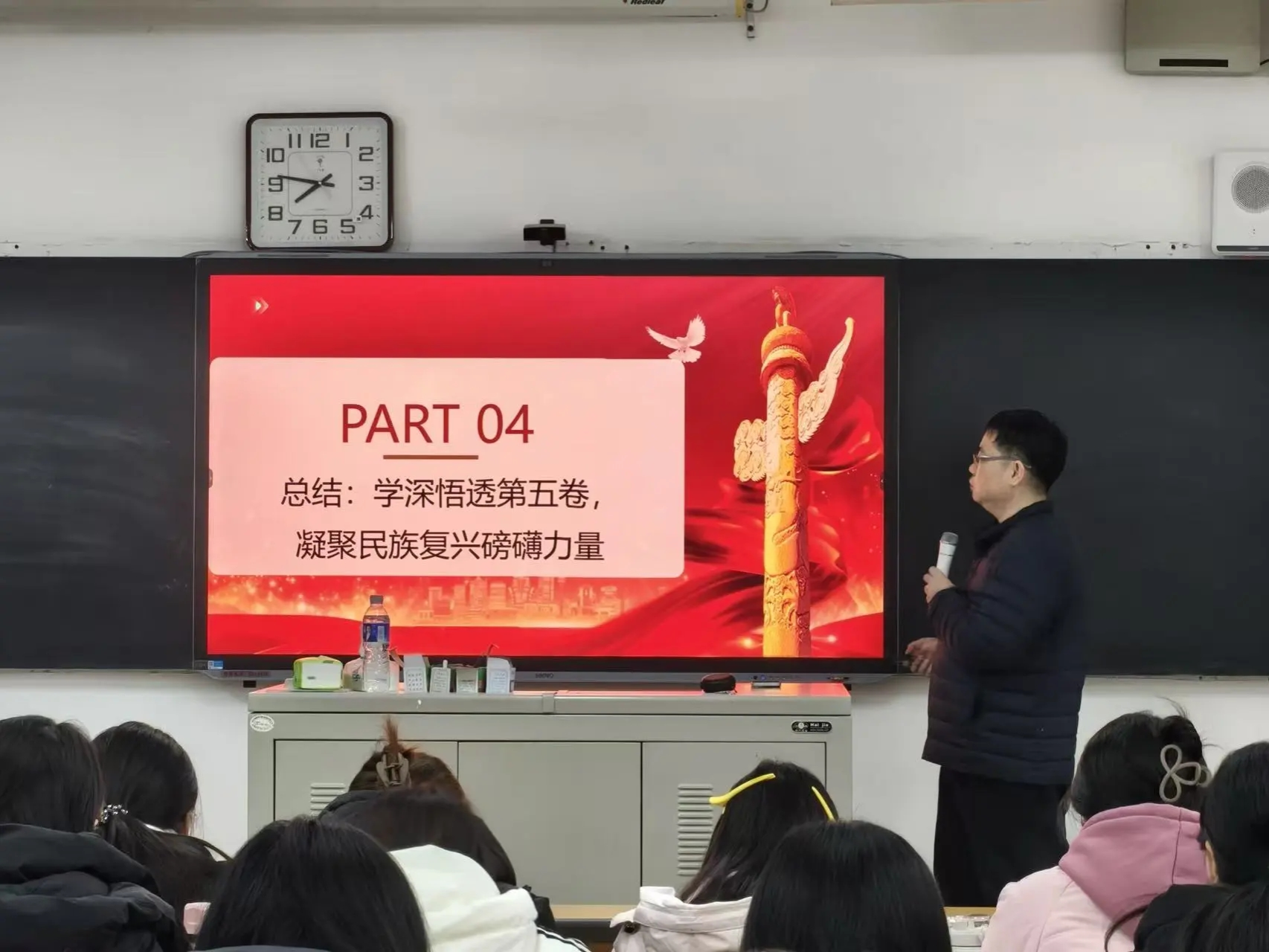 为深入学习贯彻习近平新时代中国特色社会主义思想,加深对国家发展理论的理解,2025年12月3日,外国语学院于文科楼小四教室组织召开《习近平谈治国理政》第五卷专题学习活动,本次课程由马克思主义学院教师王刚主讲,外国语学院马克思主义学习小组全体成员参加。