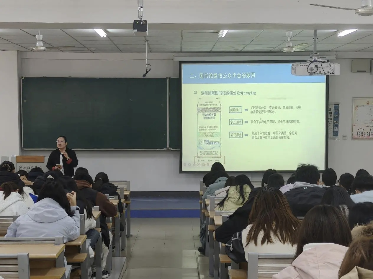 讲座伊始,马敏老师围绕图书馆馆舍布局、馆藏规模及核心服务项目展开介绍,帮助新生快速消除对图书馆的陌生感,明确资源获取与咨询服务的核心渠道。随后,她聚焦图书馆微信公众号的功能应用,通过现场实操演示,指导新生完成账号绑定,详细讲解了书目检索、借阅查询、电子书籍阅读、有声读物收听及精品公开课学习等核心功能,助力同学们借助移动终端打破时空限制,实现碎片化时间的高效利用。
