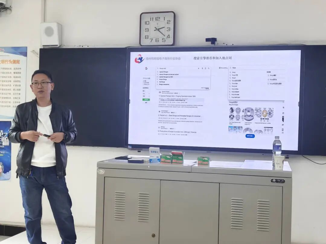 在搜索实操技巧上,韩江伟老师拆解了精准获客关键逻辑:外贸场景采用纯英文关键词,结合专业编码及目标市场本土化语言优化;善用网页、图片、地图三类搜索模式,配合海关数据和搜索联想词提升查询精准度。现场通过面对面案例演示、实时互动答疑的教学实践形式,让学生直观理解操作逻辑,及时解决疑问。针对客户资源管理,韩江伟老师强调“获客-沉淀”全链路思维,指导学生将搜索获取的核心客户信息录入CRM系统构建画像。教学中预留的实操时间,让学生进行现场实践,既强化了“语言+技能”的复合能力,也实现了课堂教学与职场需求的无缝衔接。此次校企共建课程的落地实施,既是对“专业+行业”教学模式的探索与深化,更是复合型外贸人才培养路径的创新升级。外国语学院将持续深化与沧州市跨境电子商务协会的协同合作,推动课程常态化、实效化开展,让实践教学真正助力学生实现从课堂到职场的顺畅过渡。
