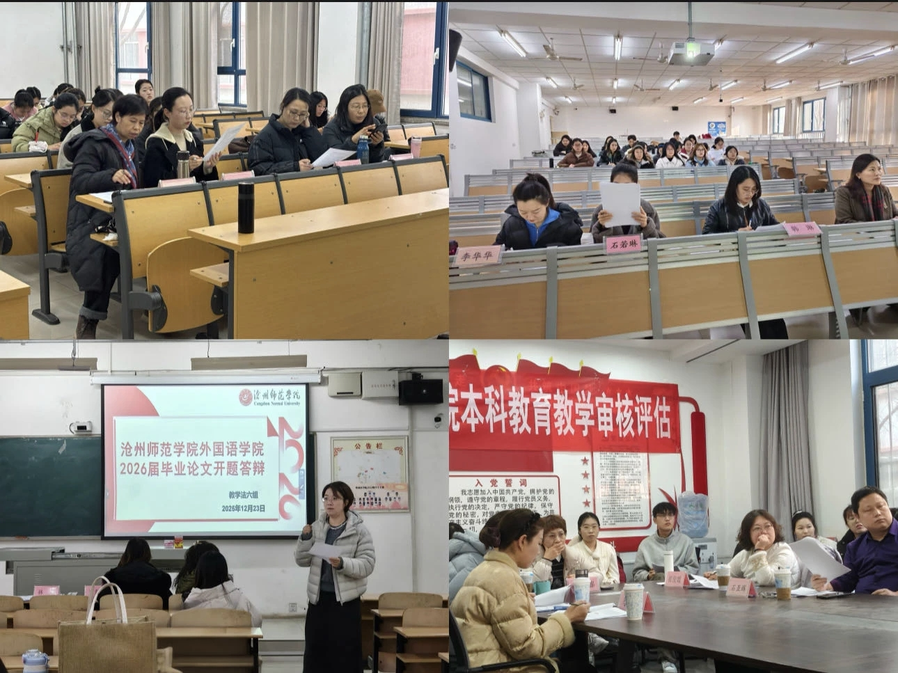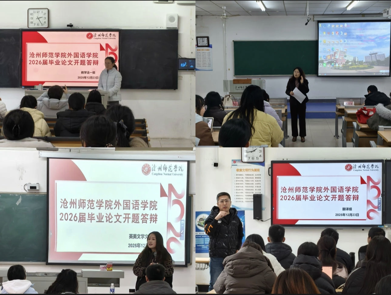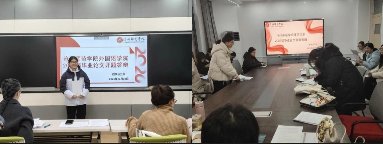 2025年12月22日至26日,外国语学院2026届毕业生论文开题答辩工作顺利落幕。本次答辩依据研究方向科学划分为十个小组,涵盖英美文学文化、翻译理论与实践、外语教学、商务英语等多个核心专业领域,全面覆盖学院核心研究范畴与实践应用方向,充分体现了学科布局的完整性与人才培养的多元化导向。